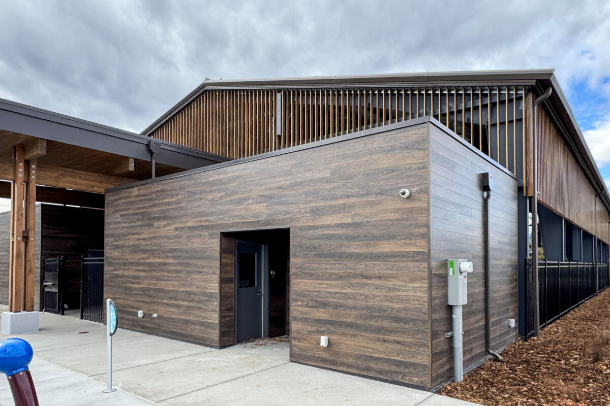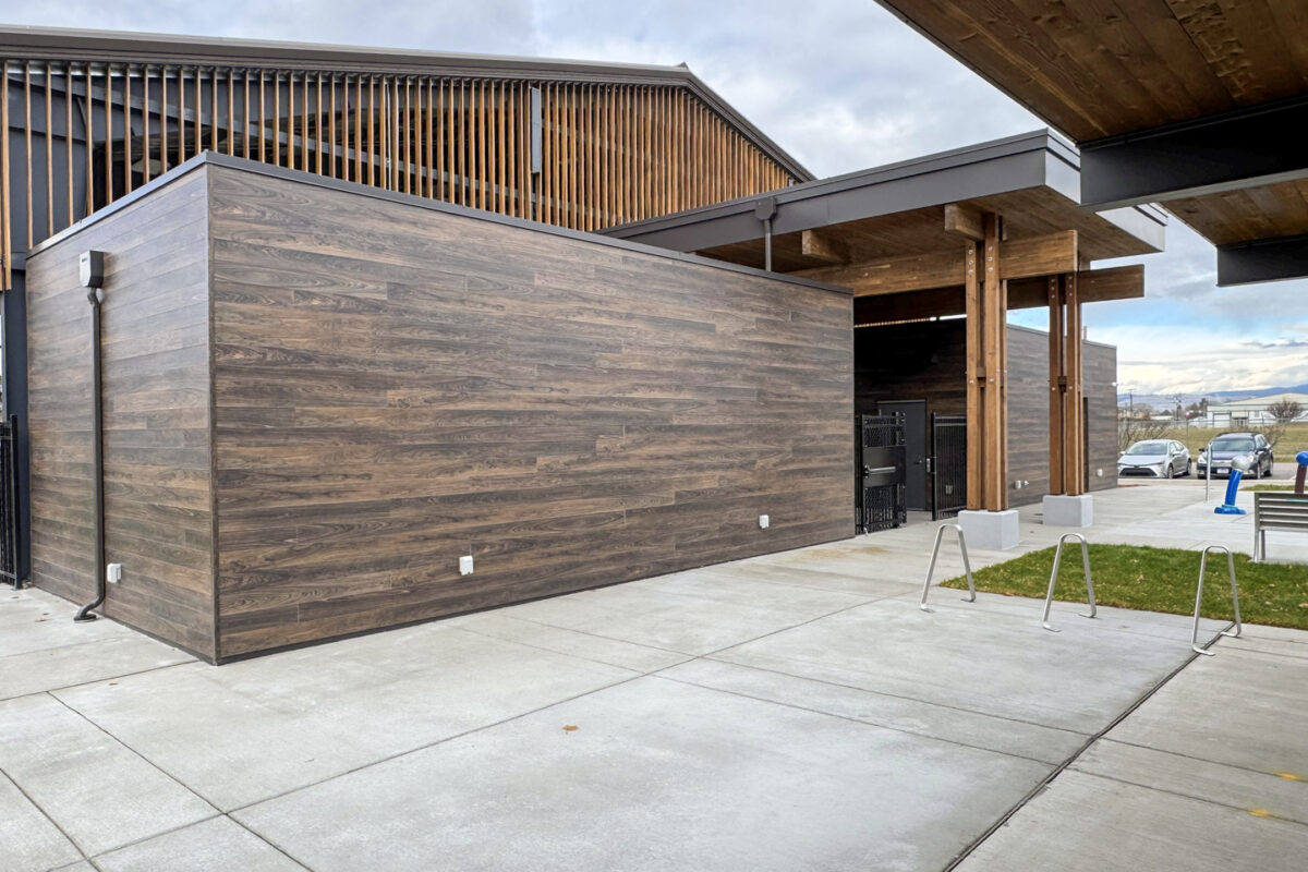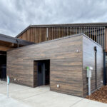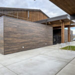 Miabec Aluminum siding with faux-wood digital HD printing was selected to achieve a warm, wood-like aesthetic without sacrificing performance. The result is a durable, weather-resistant exterior that complements the surrounding landscape and supports the building’s long-term sustainability.